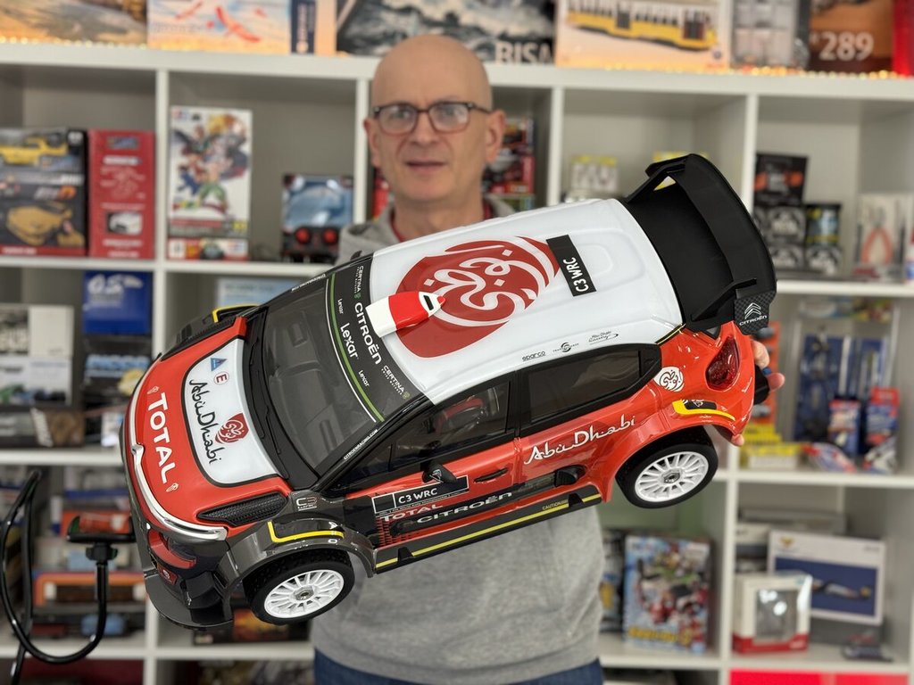 Un bolide radiocomandato in scala 1:7 che riproduce la leggendaria Citroen C3 WRC nella livrea Abu Dhabi. Trazione integrale, dettagli da urlo e dimensioni impressionanti: questo non è un giocattolo, è un pezzo da esposizione che corre davvero.