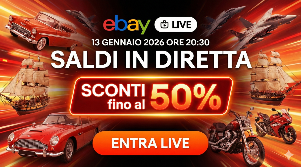 Dopo oltre 20 anni su eBay e migliaia di “Aste Pazze” che hanno fatto la storia della nostra community, è arrivato il momento di fare un salto nel futuro: la prima eBay Live di Modellismo.it!