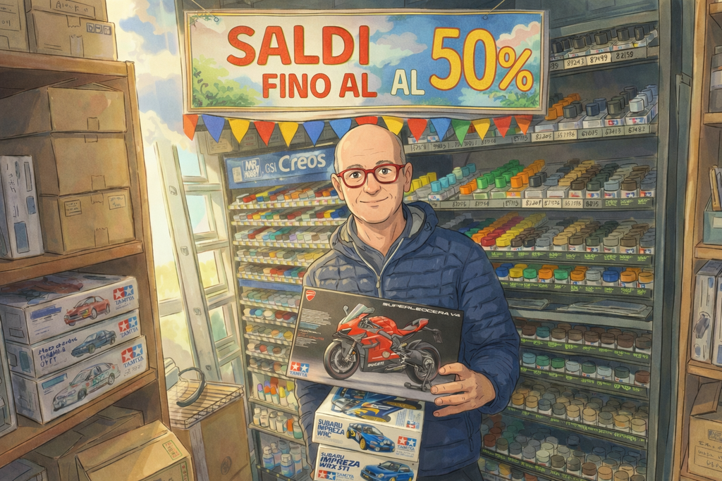 Mancano pochi giorni alla rivoluzione dello shopping di modellismo. Nei prossimi giorni pubblicheremo sui social anteprime esclusive dei prodotti che metteremo in asta, sneak peek del setup della live, e qualche sorpresa che stiamo preparando per voi.
